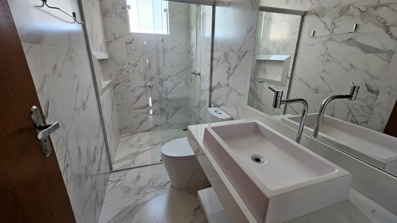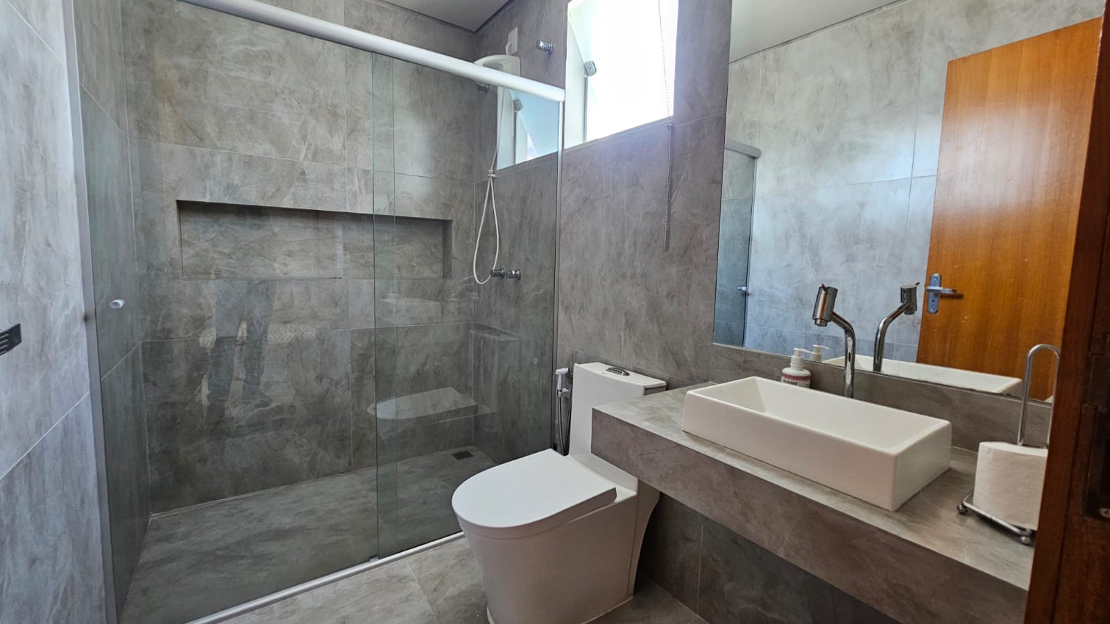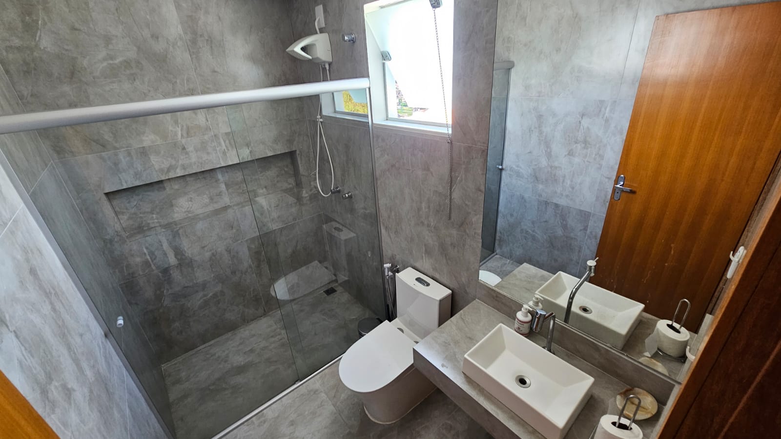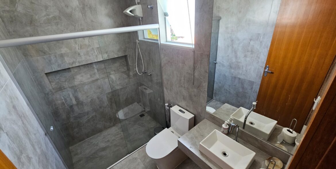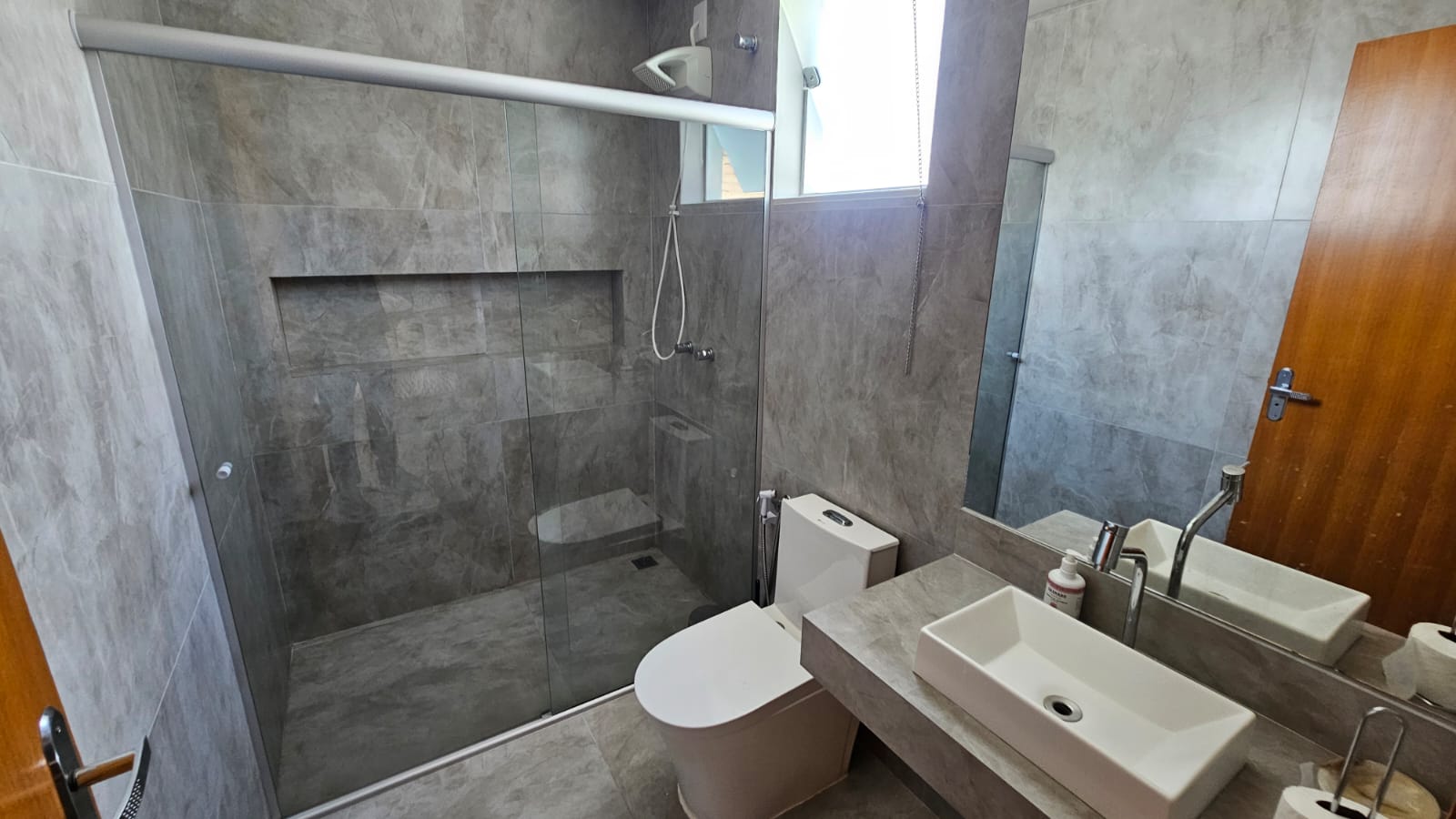 PAVIMENTO SUPERIOR: 03 QUARTOS (SENDO 01 AMPLA SUÍTE COM CLOSET E VARANDA), BANHEIRO SOCIAL).